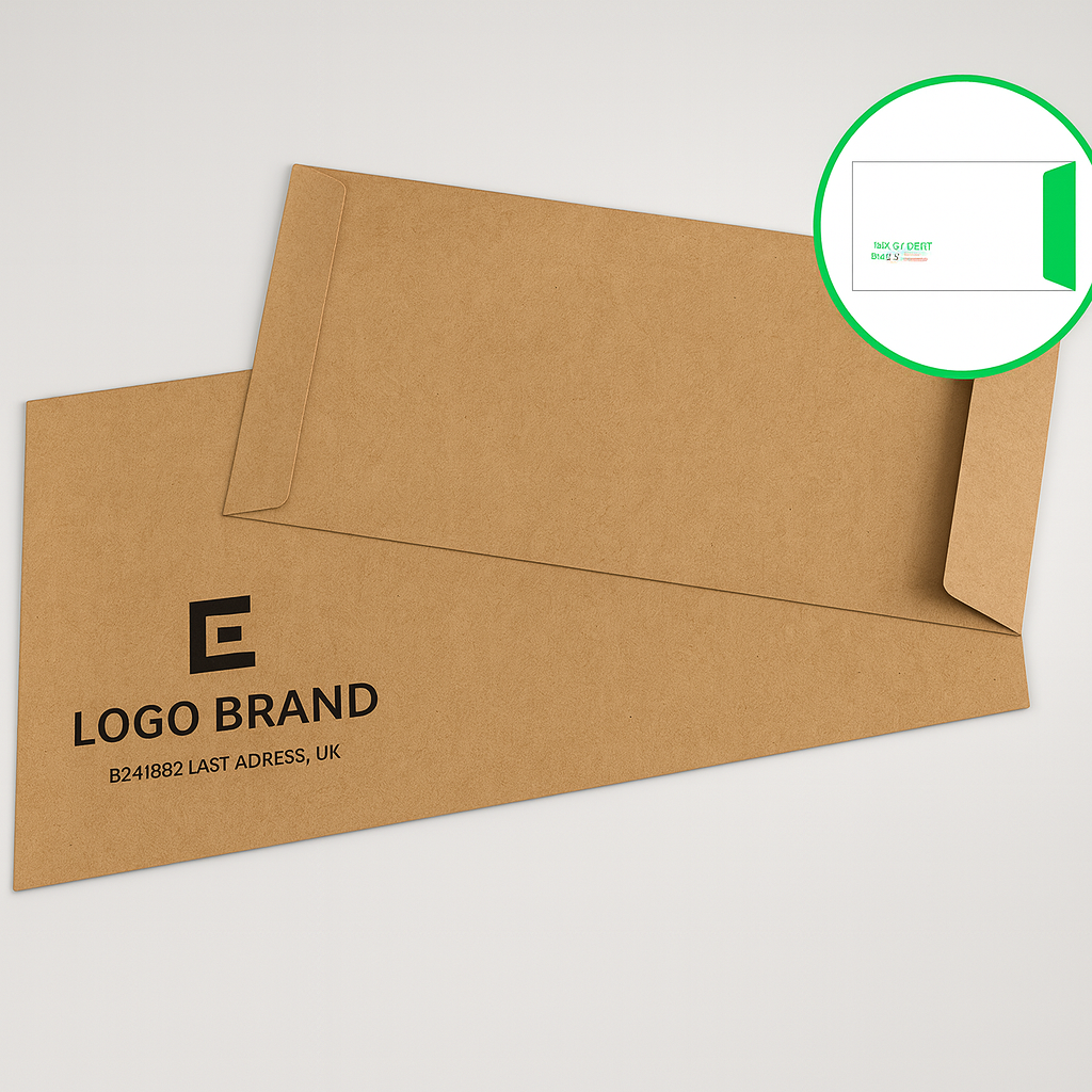 Imprime tu logo, mensaje o diseño para crear sobres únicos.